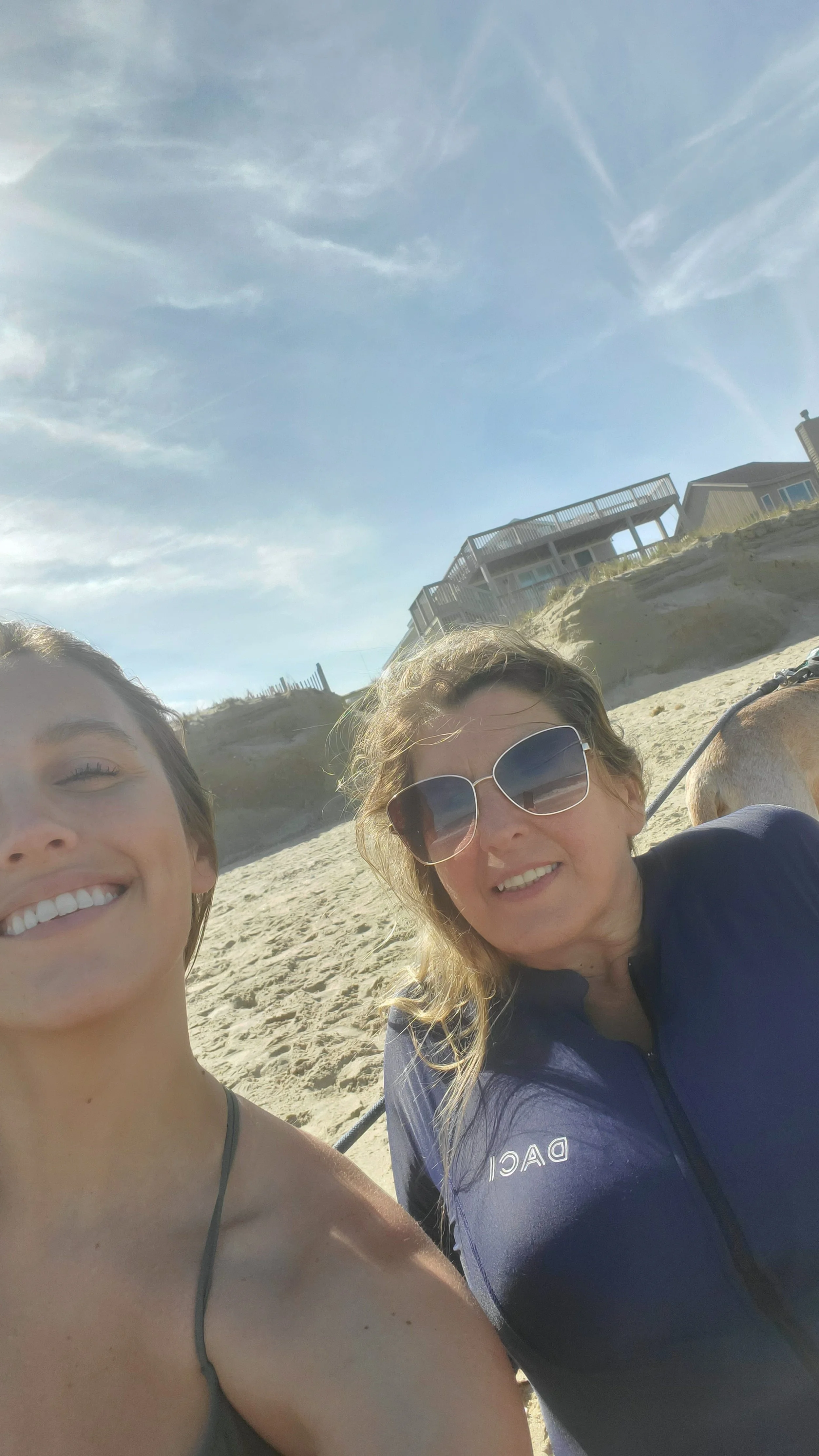 To be on a beach. Next to the ocean. Hearing & feeling the waves crash in, the dogs enjoying the smells & Cory burying his feet into the sand. But most importantly, my mom & I being together doing something we love.